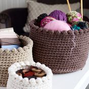 Tarvikkeet: 300 g kalastajalankaa (15 tai 18-säikeistä), virkkuukoukku 4 mm, pujotteluun vanhoja, värikkäitä puuvillakankaita tai langanloppuja.