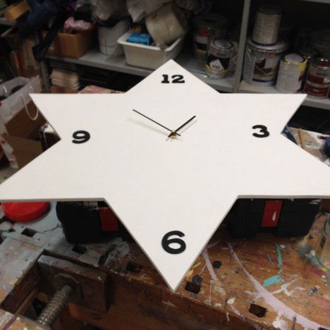 Maalaa numerot mustiksi ja liimaa paikoilleen. Voit halutessasi maalata ja liimata kellotauluun kaikki 12 numeroa, joka toinen niistä tulee sakaran kärkeen, joka toinen sakaroiden väliin.