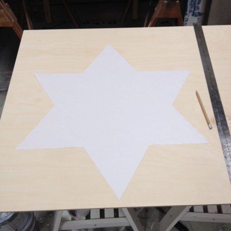 Jäljennä tähti Suuri Käsityö 8/2014 -lehden kaava-arkilta ja piirrä se vanerille.