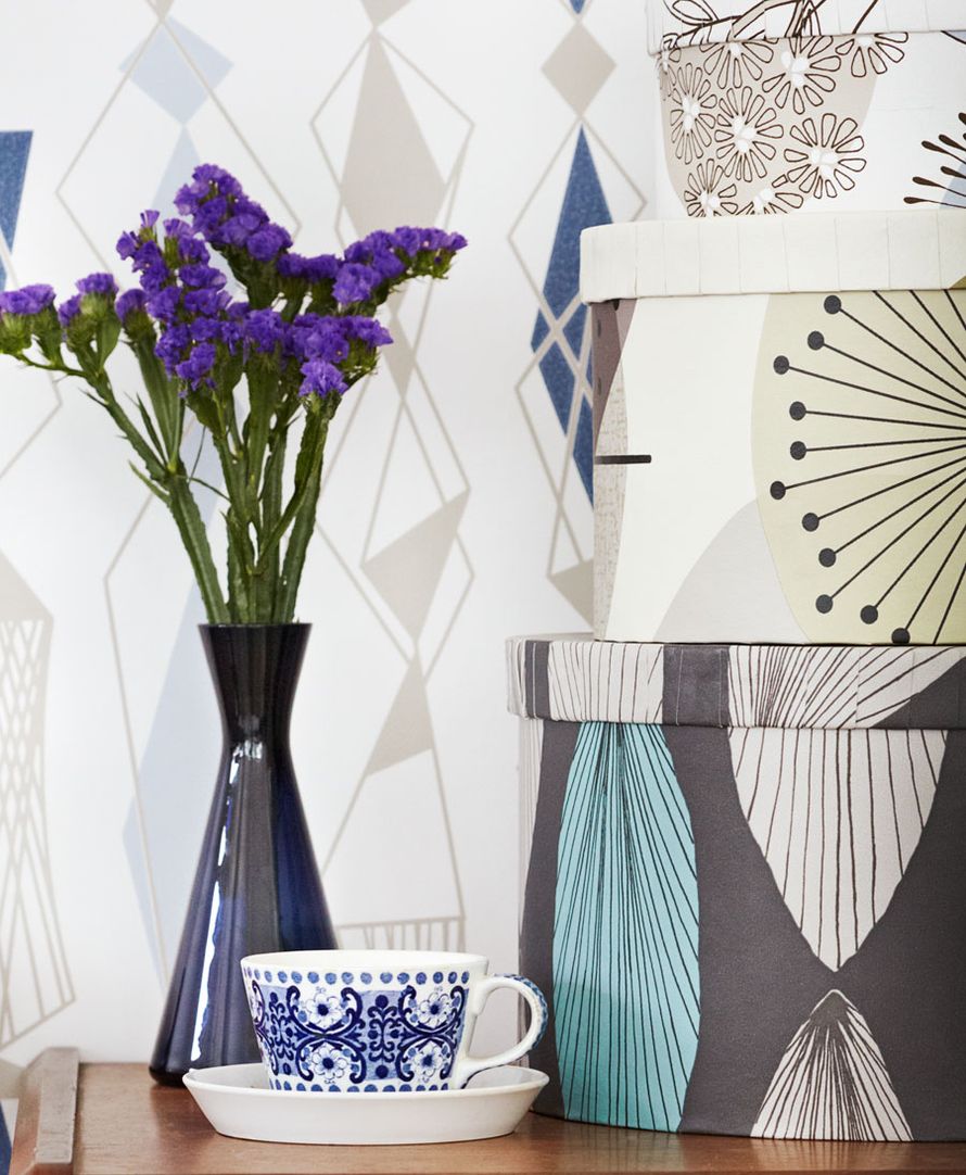 Kauniin tapetin avulla esimerkiksi kartonkirasia muuntuu hurmaavaksi katseenvangitsijaksi, jossa on näppärä säilyttää kodin pieniä tavaroita.