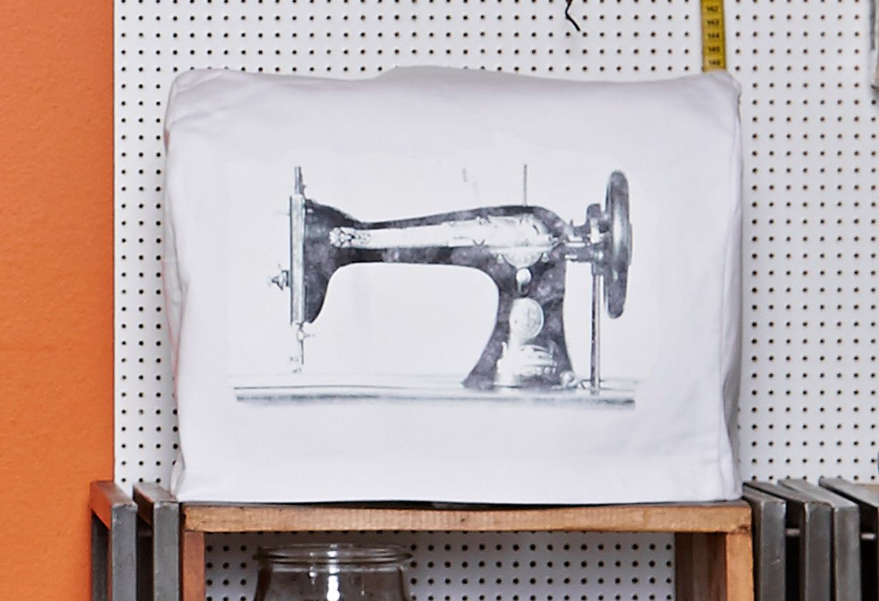 Silitä ompelukoneen kuva kuvansiirtopaperin avulla ompelukoneen suojahuppuun.