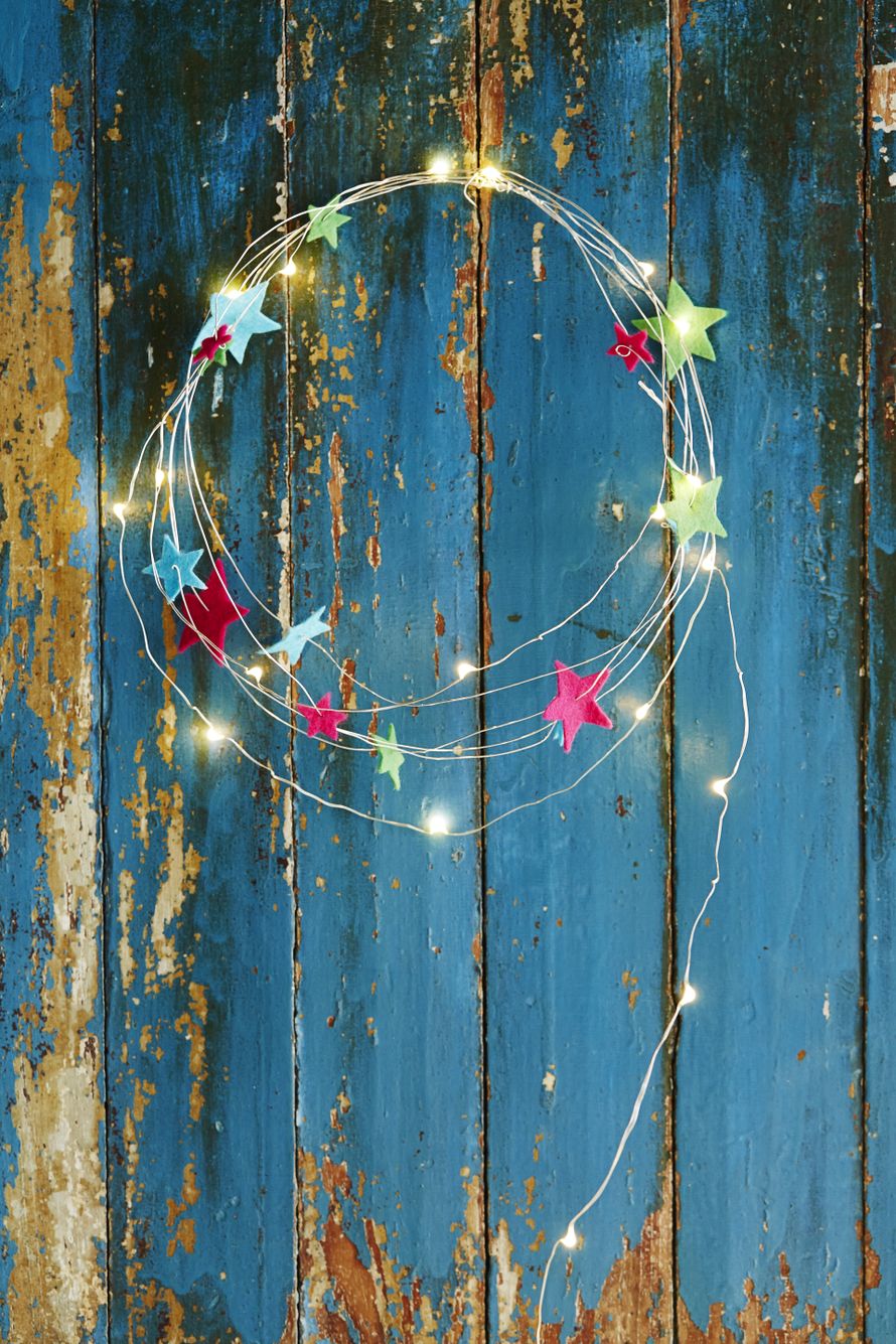 Tarvitset: huopaa, rautalankaa ja valonauhaa.