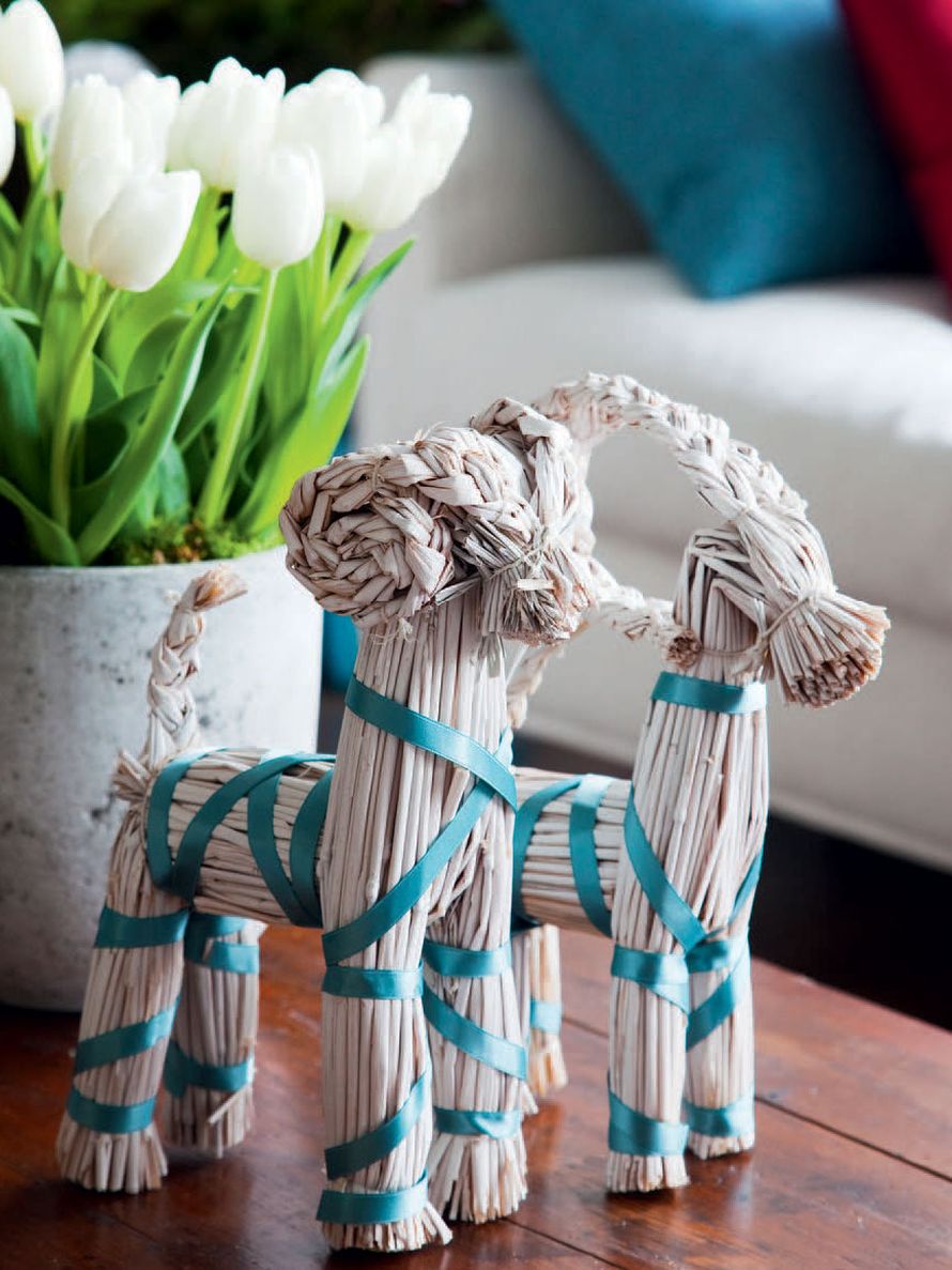 Monelle olkipukki on perinteisen keltaisenakin rakas joulukoriste. Jos perinteinen olkipukki tuntuu kuitenkin liian perinteiseltä, hanki valkoista maalia ja maalaa sille uusi, raikas asu. Olkipukkia voi myös piristää oman maun mukaan uusilla, kivanvärisillä valjailla.