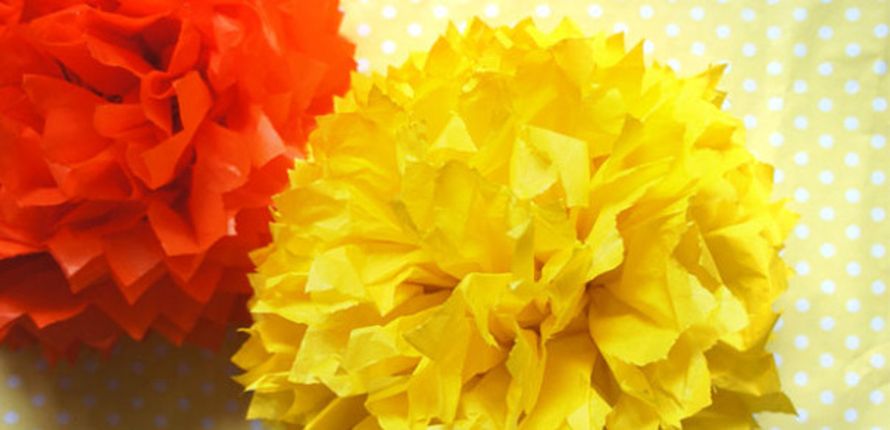 Onnistunut koristelu nostaa juhlatunnelman kattoon. Näyttävät ja edulliset pom pom -koristeet syntyvät silkkipaperista.