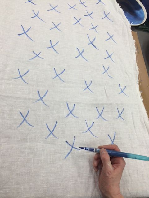 1. Piirrä kangastussin ohuella päällä kankaalle kukkia tai muita kuvioita.