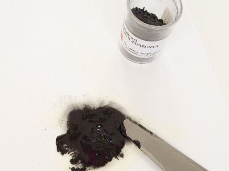 Sekoita värijauhe ja kynäöljy huolellisesti palettiveitsellä kaakelin päällä.