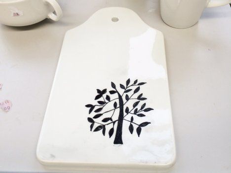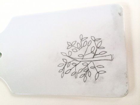 Kalkkeeripaperi kopioi kynällä tekemäsi ääriviivat posliinin pinnalle.