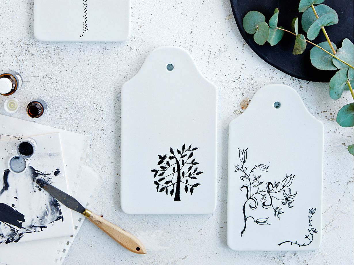 Alla olevasta linkistä voit tulostaa leikkuulaudassa käytetyn puukuvion sekä mukissa ja lautasessa käytetyn tyylitellyn kukkakuvion.