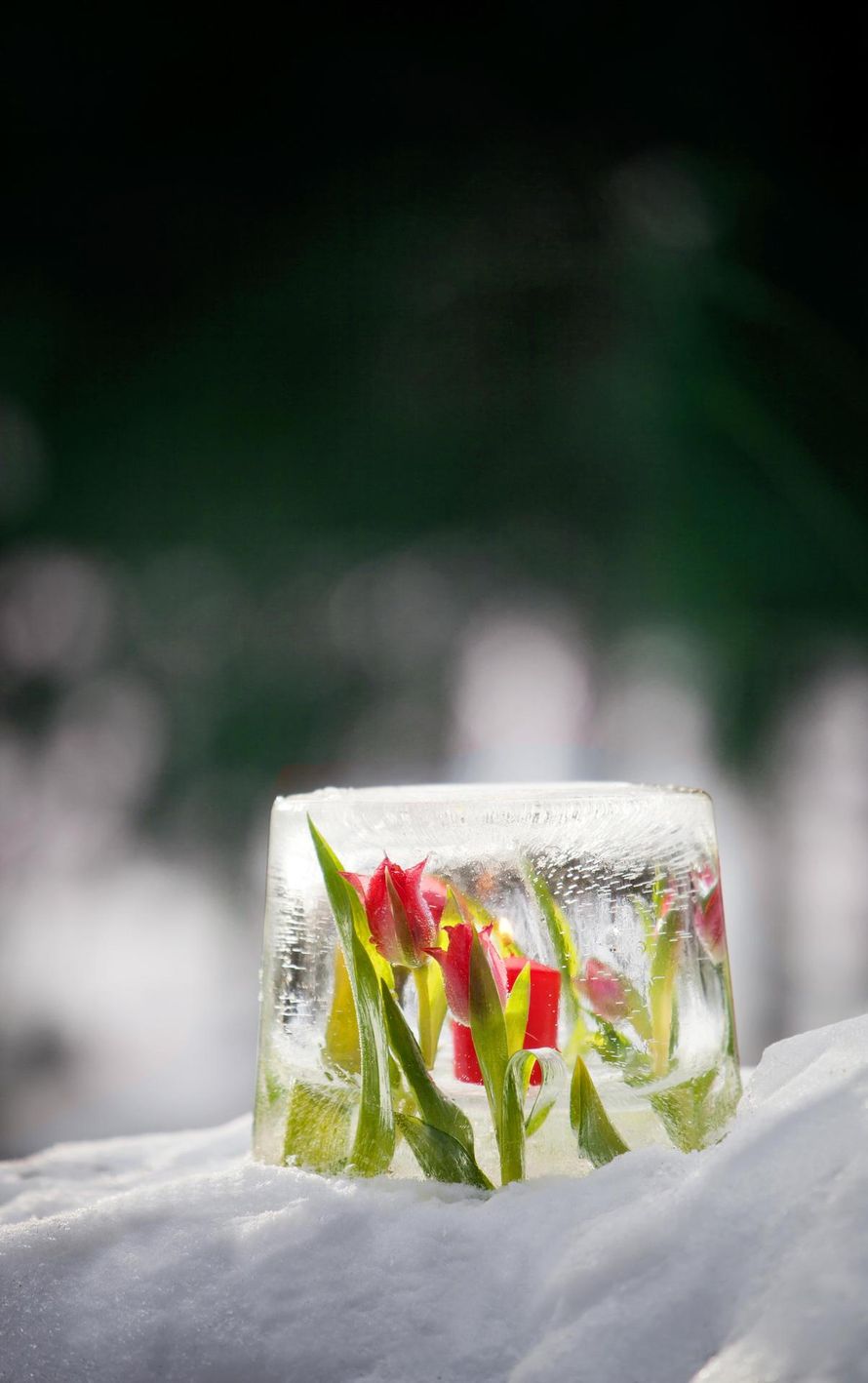 Kaunis tulppaanikoristeinen jäälyhty on helppo tehdä. Näillä ohjeilla taiot kesän talven keskelle.
