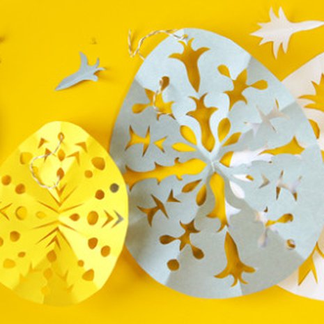 Paperimassamunia voi koristella esimerkiksi liimaamalla niihin paperikoristeita. Maalaa munat ensin haluamasi värisiksi tai jätä ne valkoisiksi.