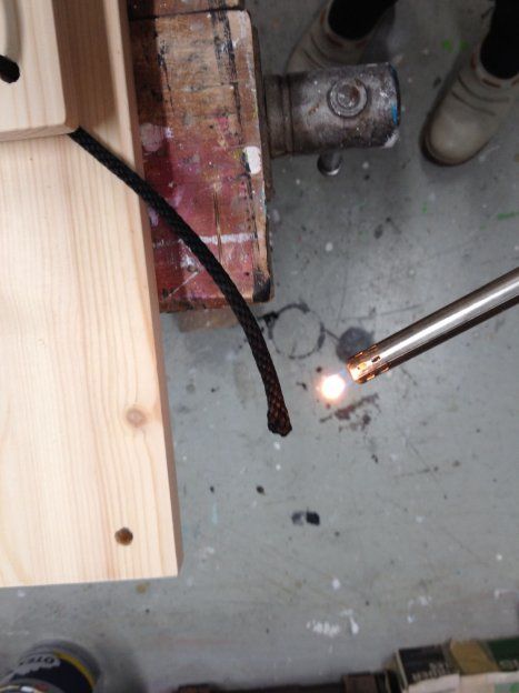 3. Pujota nailonnaru reikiin ja solmi riman alapuolelta. Sulata narun pää liekillä purkautumattomaksi.
