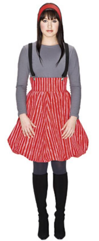 Somista pallohelmainen hame ja niukka trikoopaitajuhlaan näyttävillä asusteilla ja arkeen hauskoilla henkseleillä, vinkkaa asun suunnittelija Terhi Isokuortti.