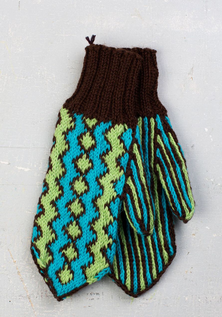 Viimeistely: Päättele langanpäät ja höyrytä lapaset kevyesti.