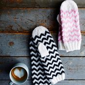 Neuletiheys: 29 s ja 27 krs = 10 cm. Kokeile tiheyttä ja vaihda puikot tarvittaessa. Jos haluat isommat lapaset, valitse paksummat puikot.