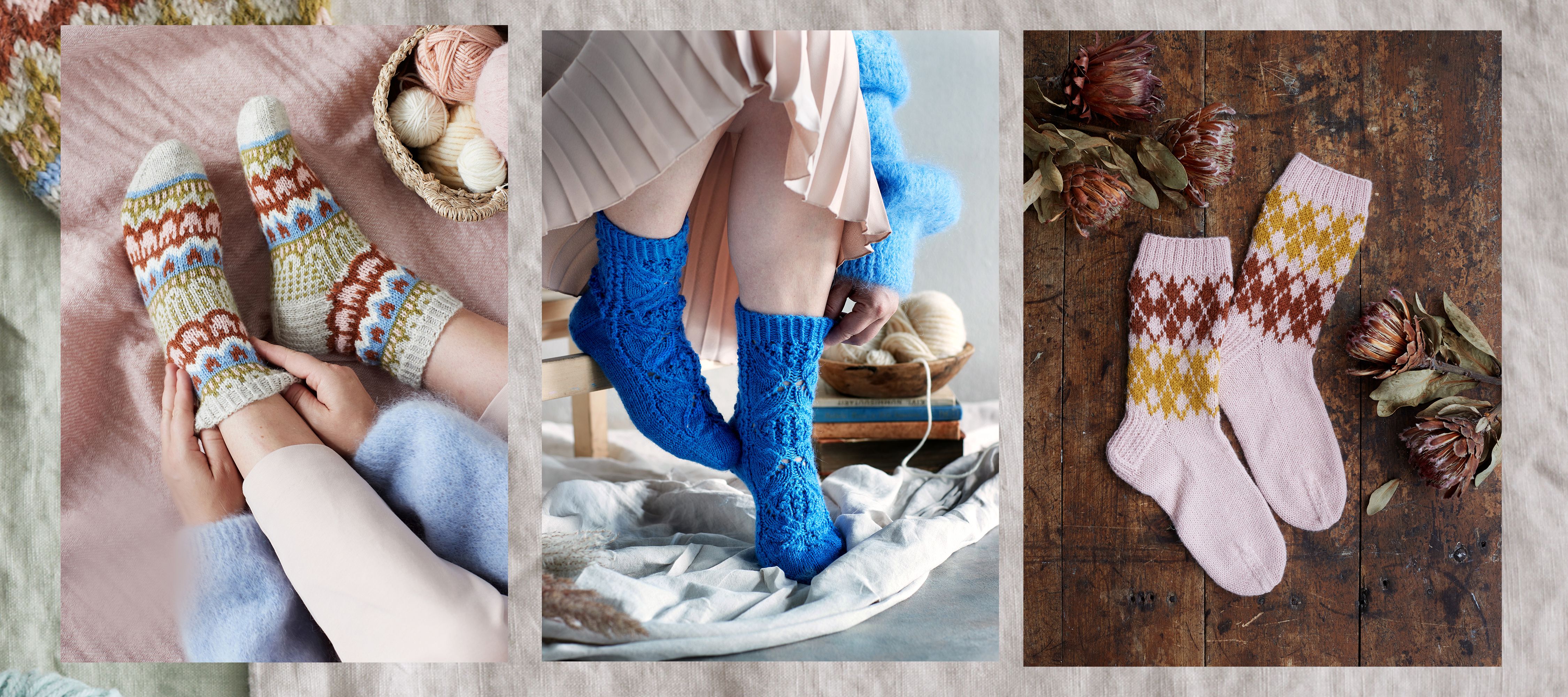 Kauneimmat klassikot -villasukkalehti ilmestyy 4.10. ja on myynnissä rajoitetun ajan. Lehteen on neulottu perinteisiä suomalaisia kuvioita ja luotu raikkaasti uusia perinteitä – tekemistä löytyy varmasti niin aloittelijalle kuin tyylin taiturillekin.