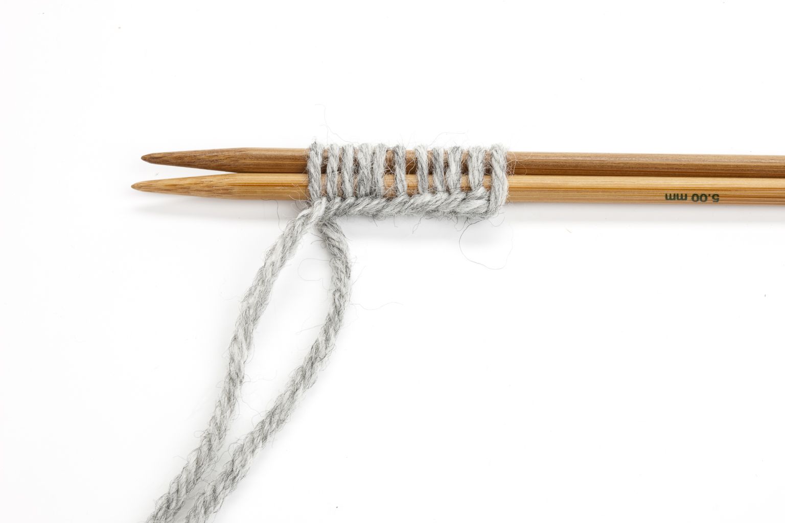 1. Luo silmukat kahdella puikolla tai yhdellä paksummalla puikolla, jotta reunasta tulee tarpeeksi joustava.