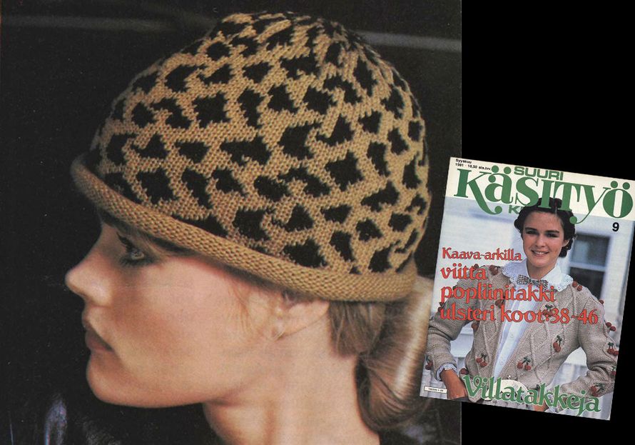 Tarvikkeet: 50 g beigeä ja mustaa villa- tai villasekoitelankaa, esimerkiksi Novita Wool, 40 cm pitkä pyöröpuikko ja sukkapuikot 3.