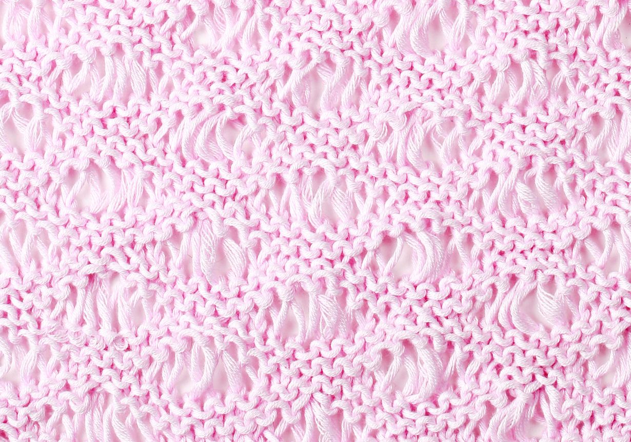 6. kerros: Neulo oikein niin, että pudotat langankierrot puikolta.