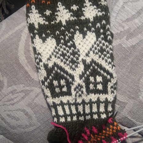 Alkuperäinen sukka on neulottu Novitan Nalle-langasta. Mökin kohdalla varressa on 60 silmukkaa.