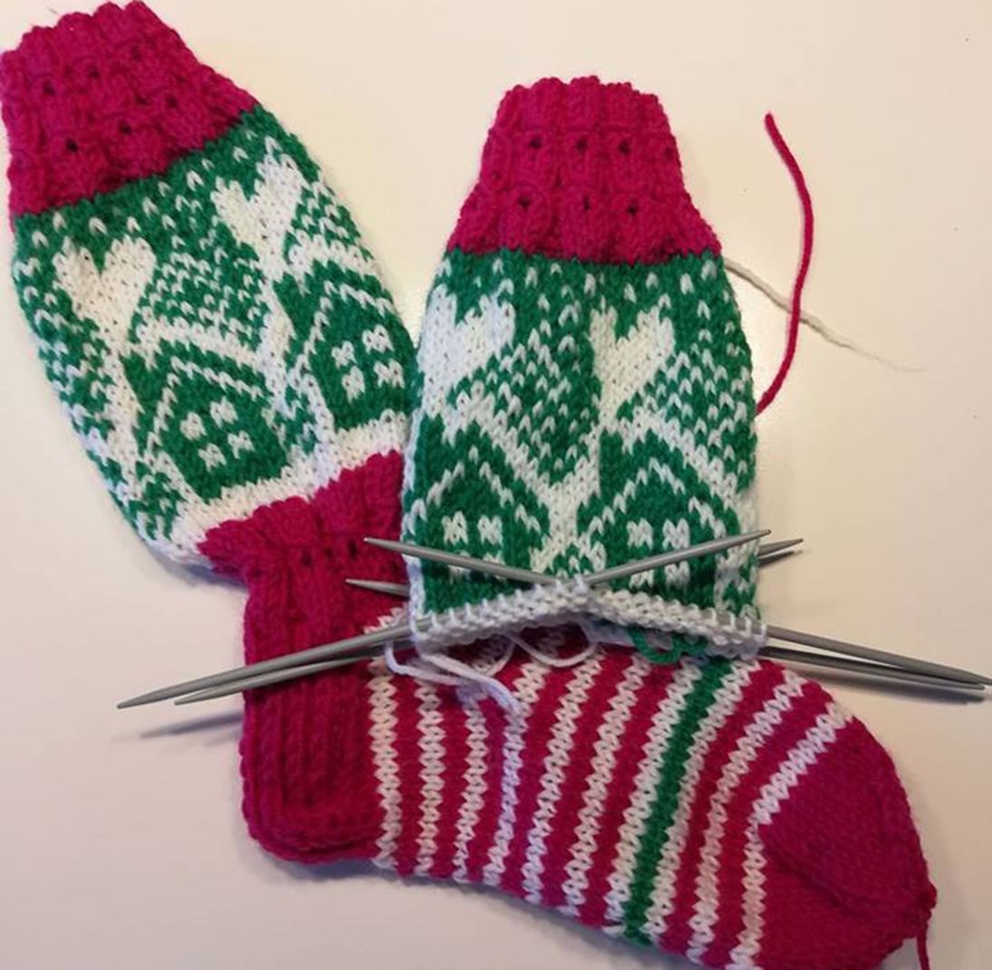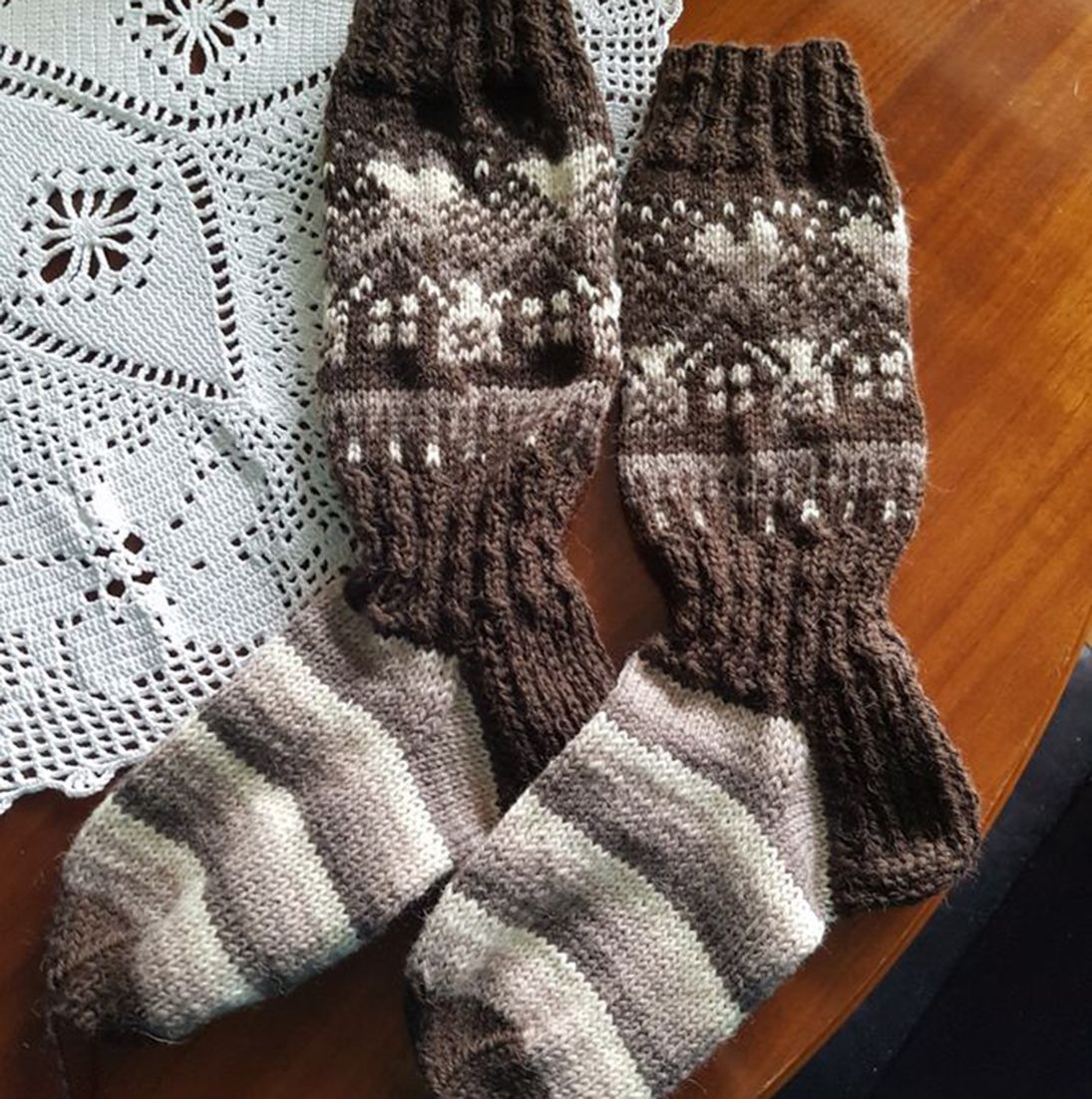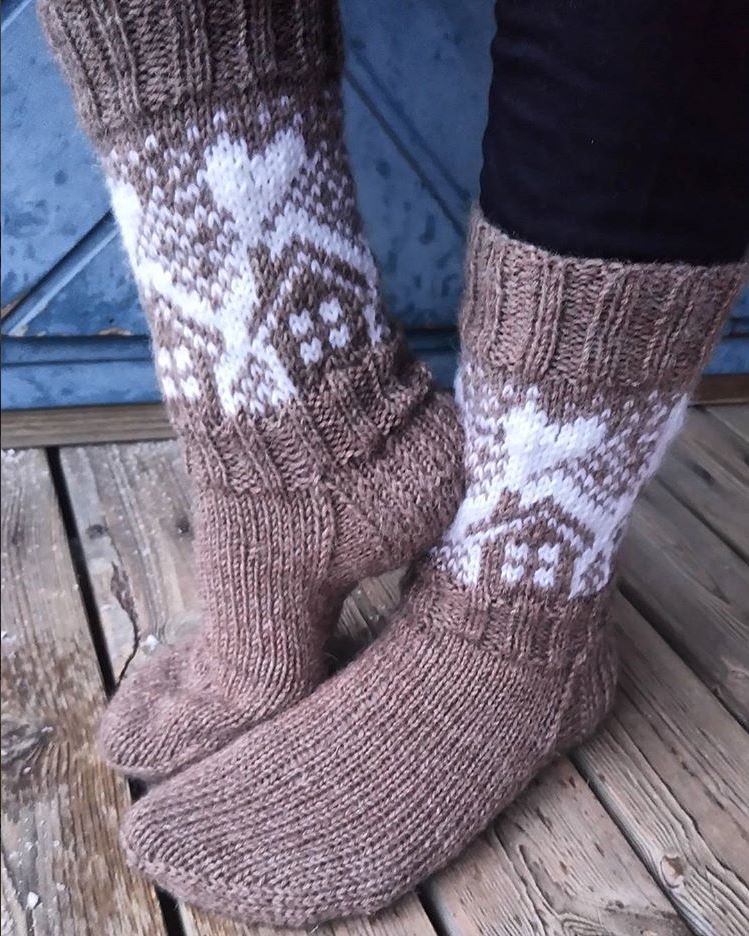 "Ylipolven sukat serkulle, mökkisukat ja säärystimet appivanhemmille ja vielä sukat ihanalle 7kymppiselle pariskunnalle." - Villasukkalife