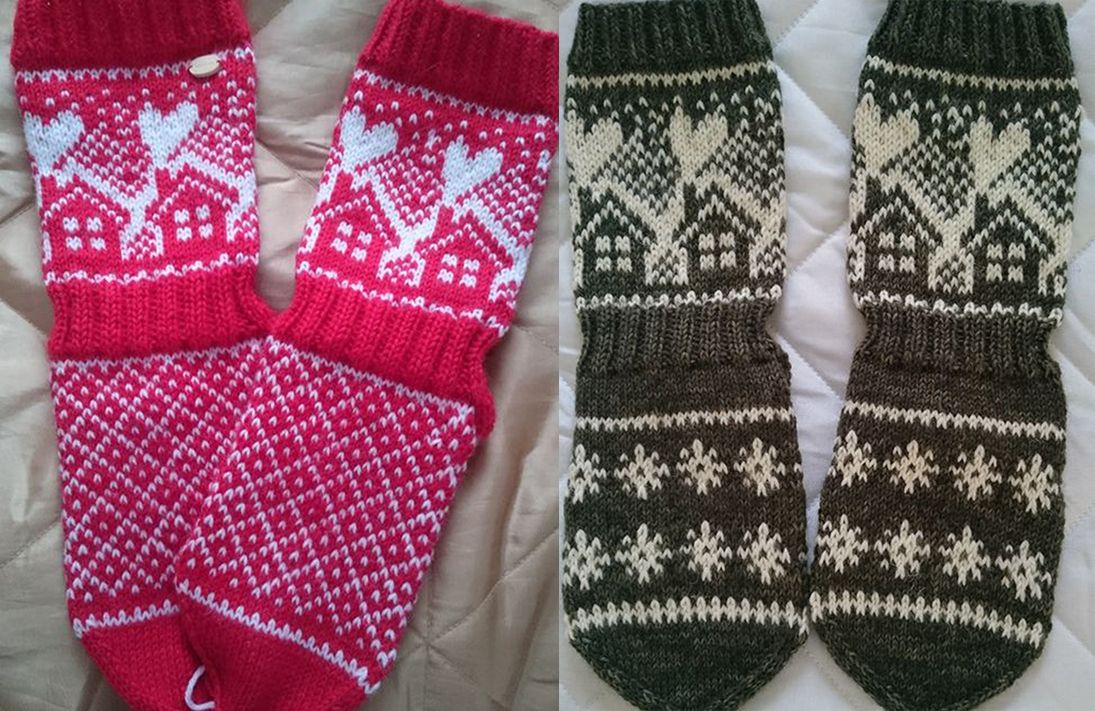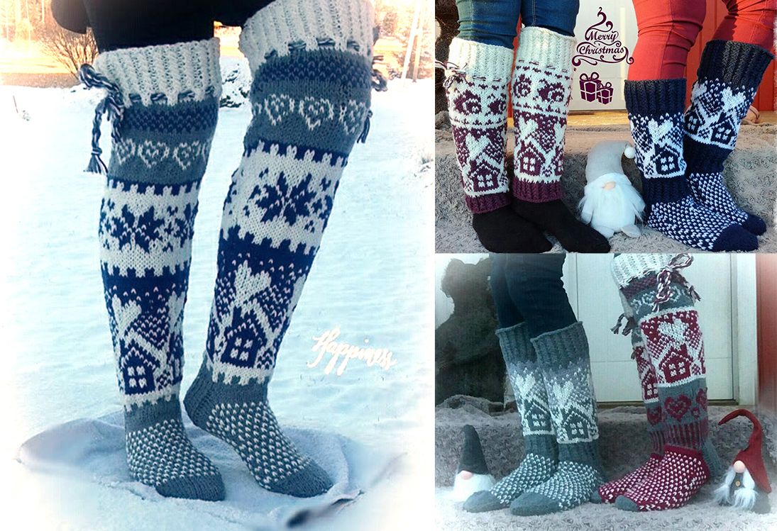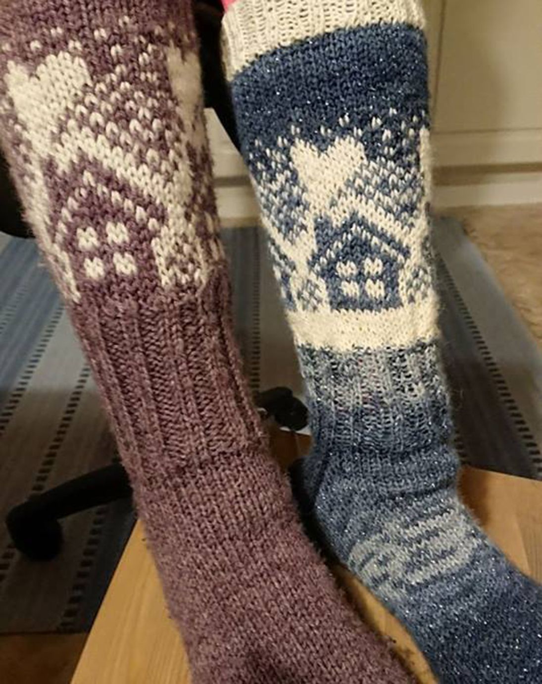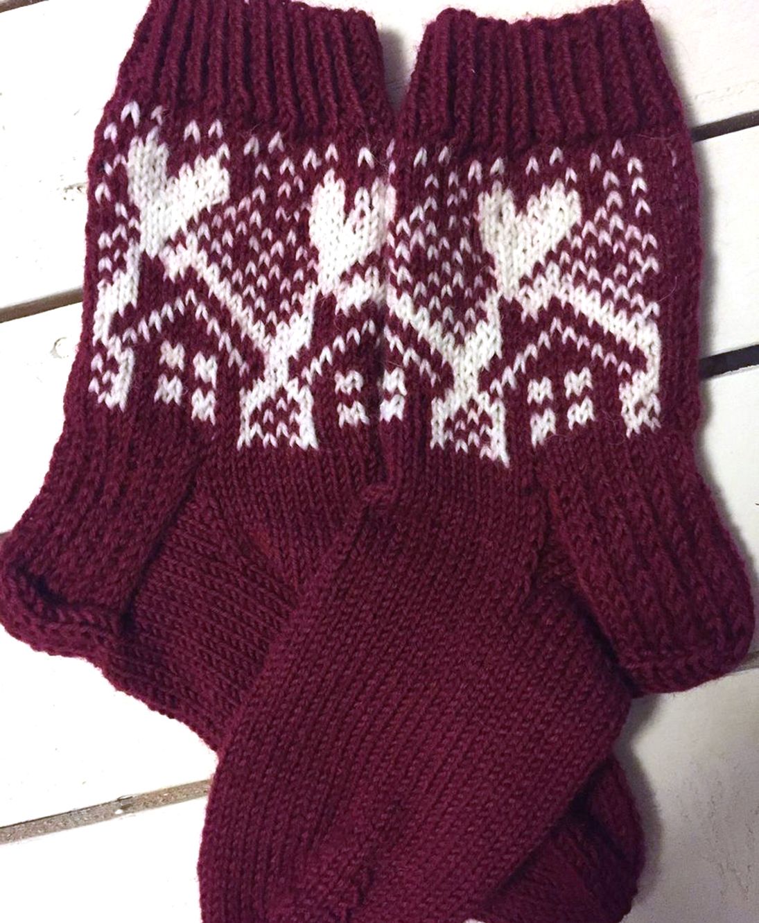 "Ylipolven sukat serkulle, mökkisukat ja säärystimet appivanhemmille ja vielä sukat ihanalle 7kymppiselle pariskunnalle." - Villasukkalife