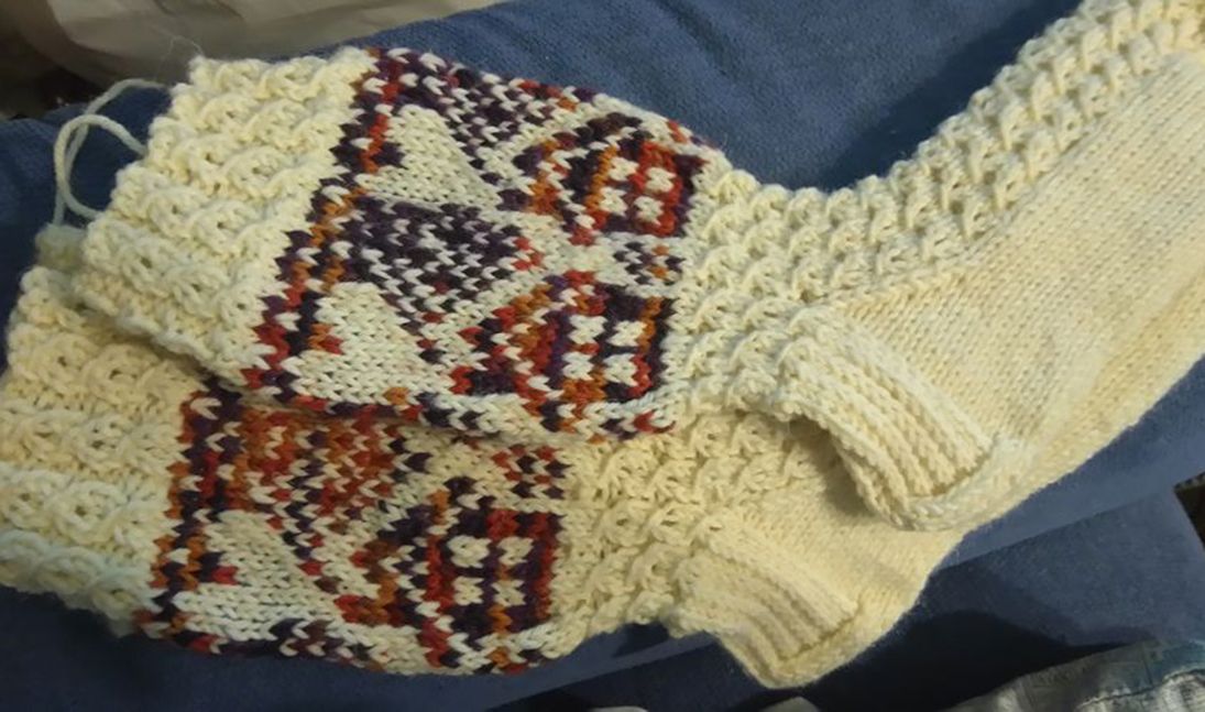 "Haasteessa kysytään, kumminpäin neulon sukat, ylhäältä alas vai alhaalta ylös? Tottumuskysymyshän se on, olen vain kerran varpaista varteen neulonut.