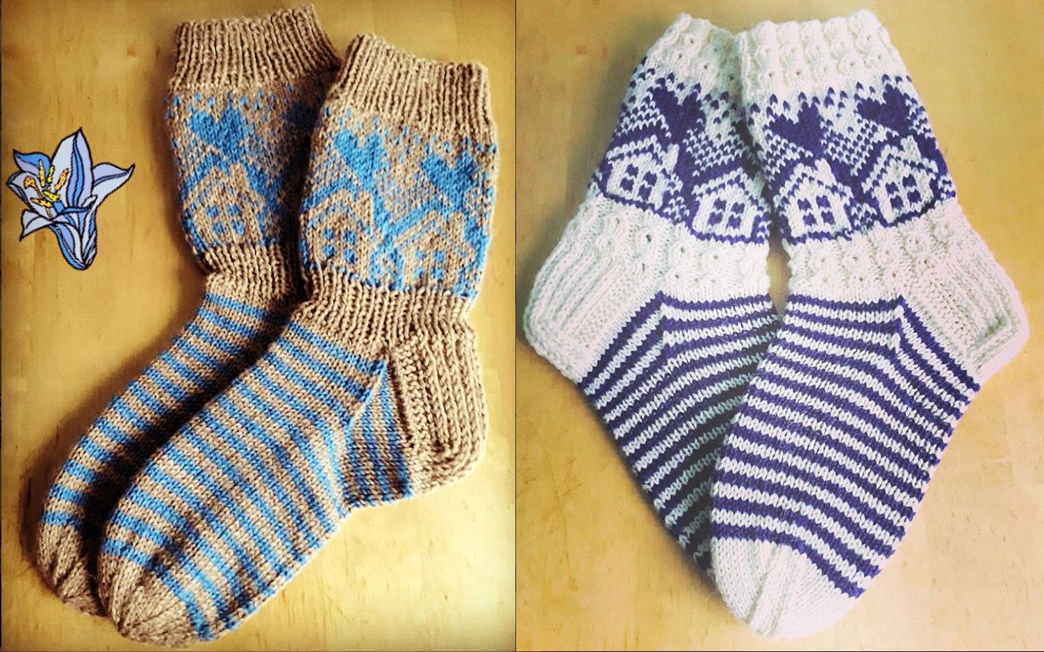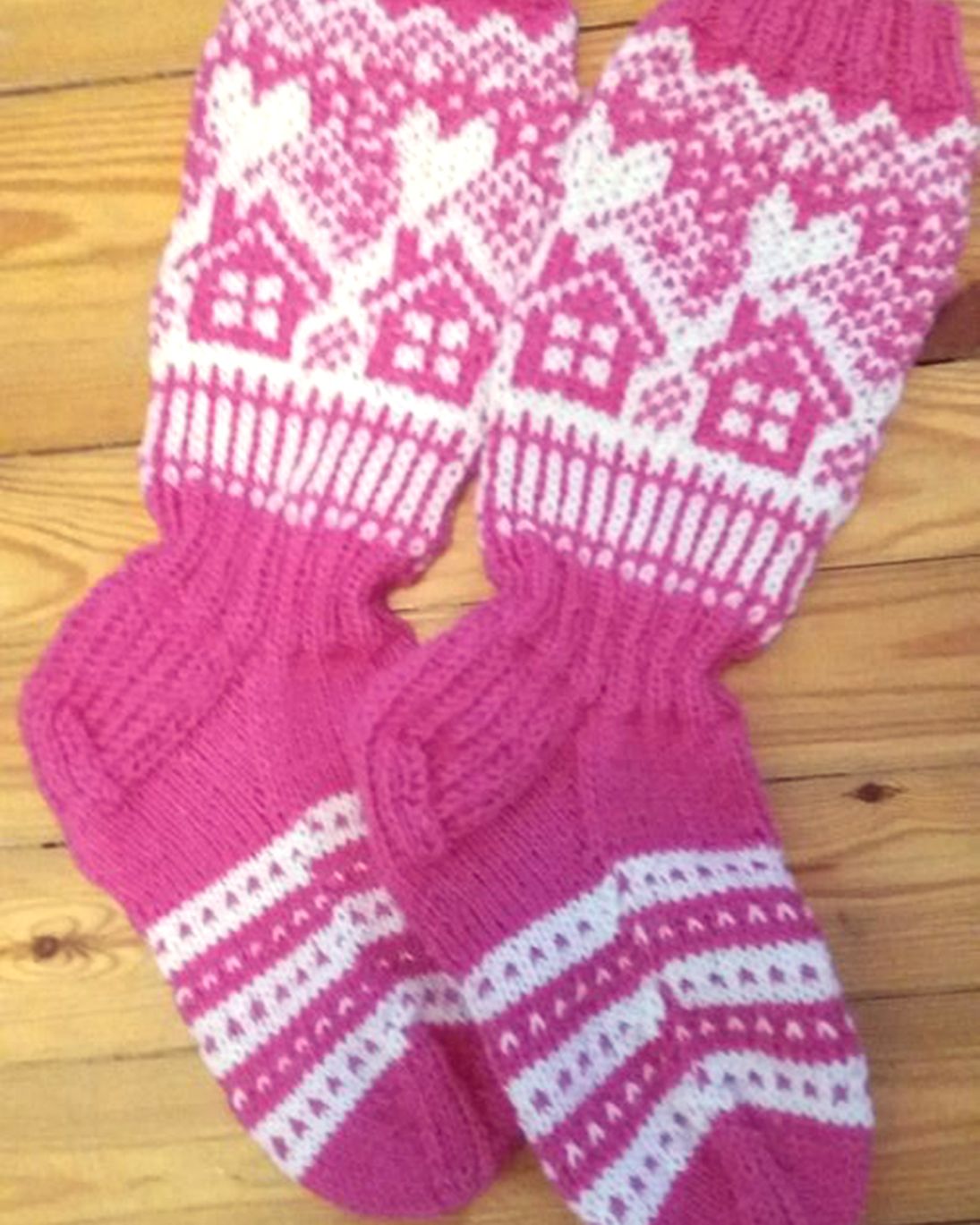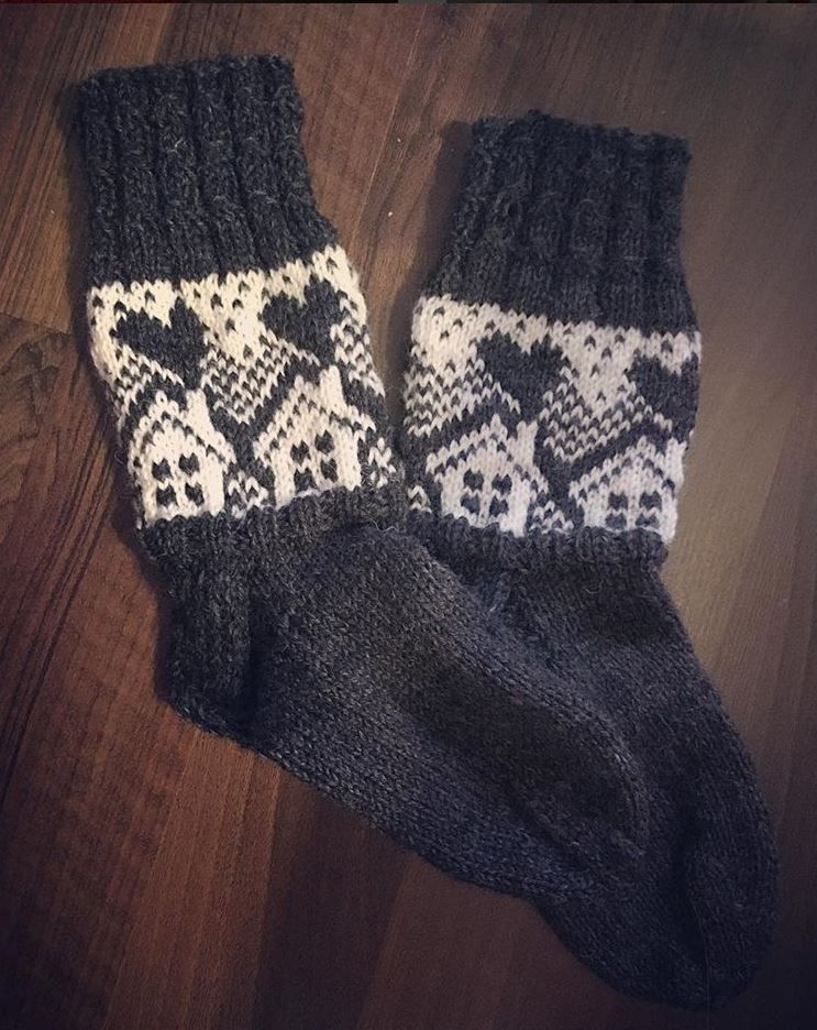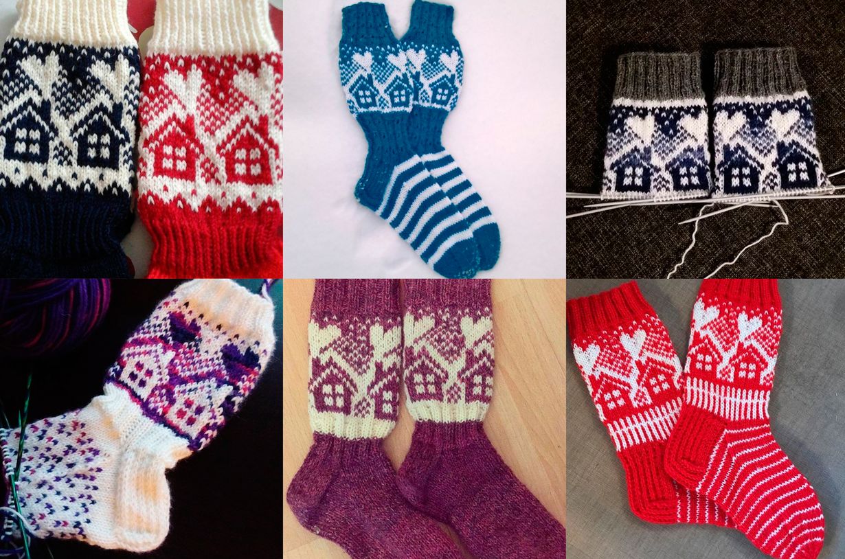 Suuri Käsityö -lehden vanhasta Metsänväki-sukkamallista poimittu yksityiskohta on innostanut käsityönystävät neulomaan somia pikkumökkejä villasukkien varsiin. Katso kuvat erilaisista versioista. Todella taidokasta!