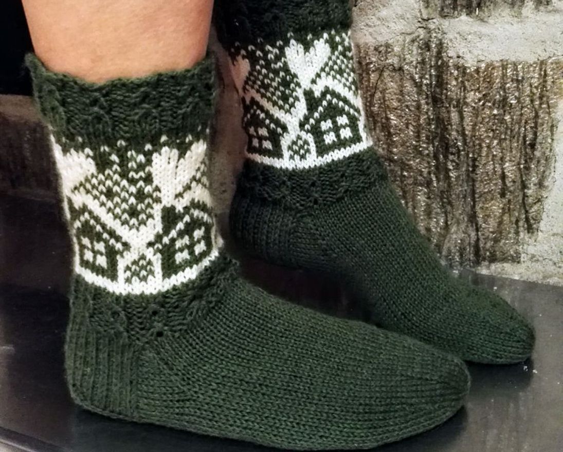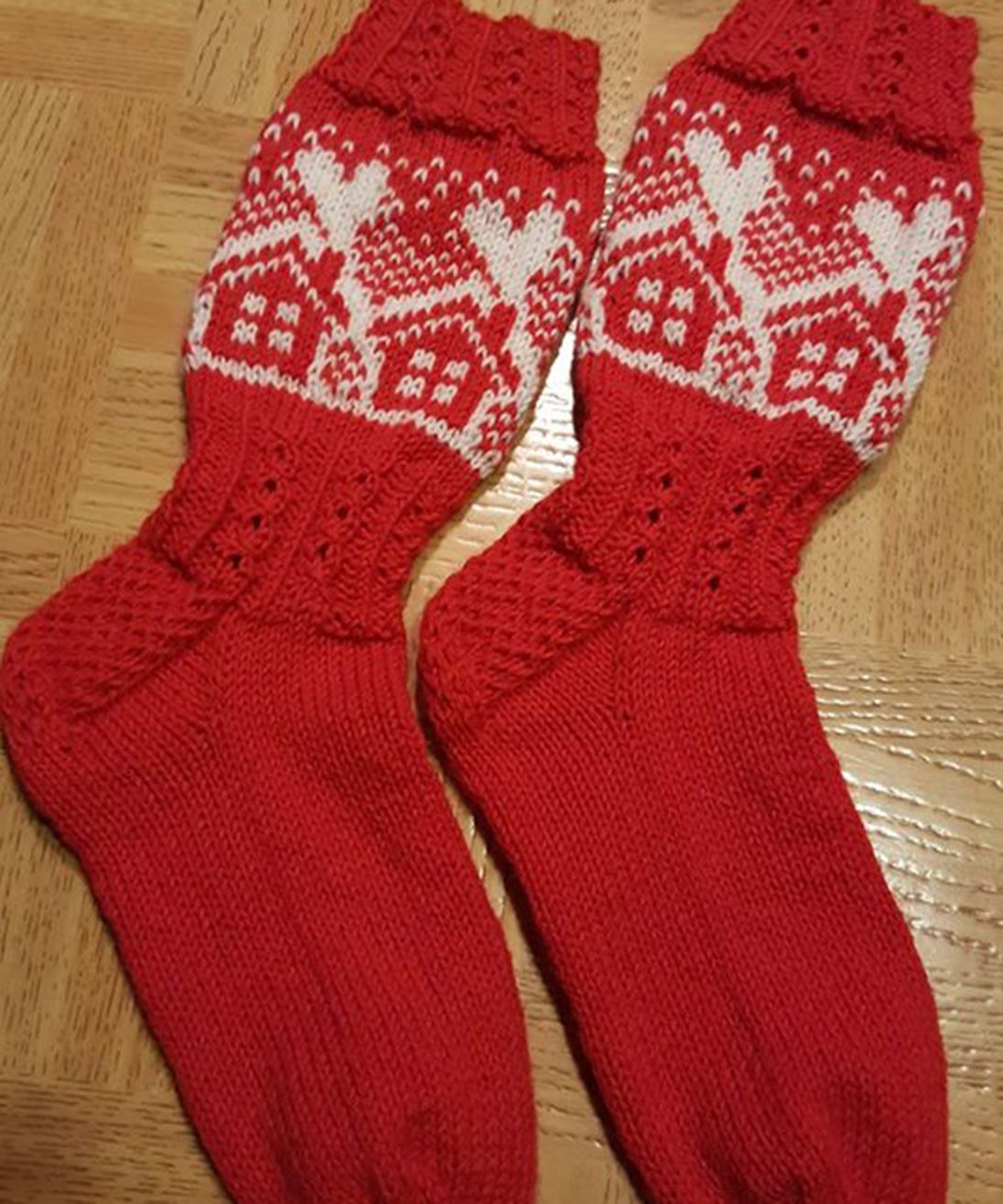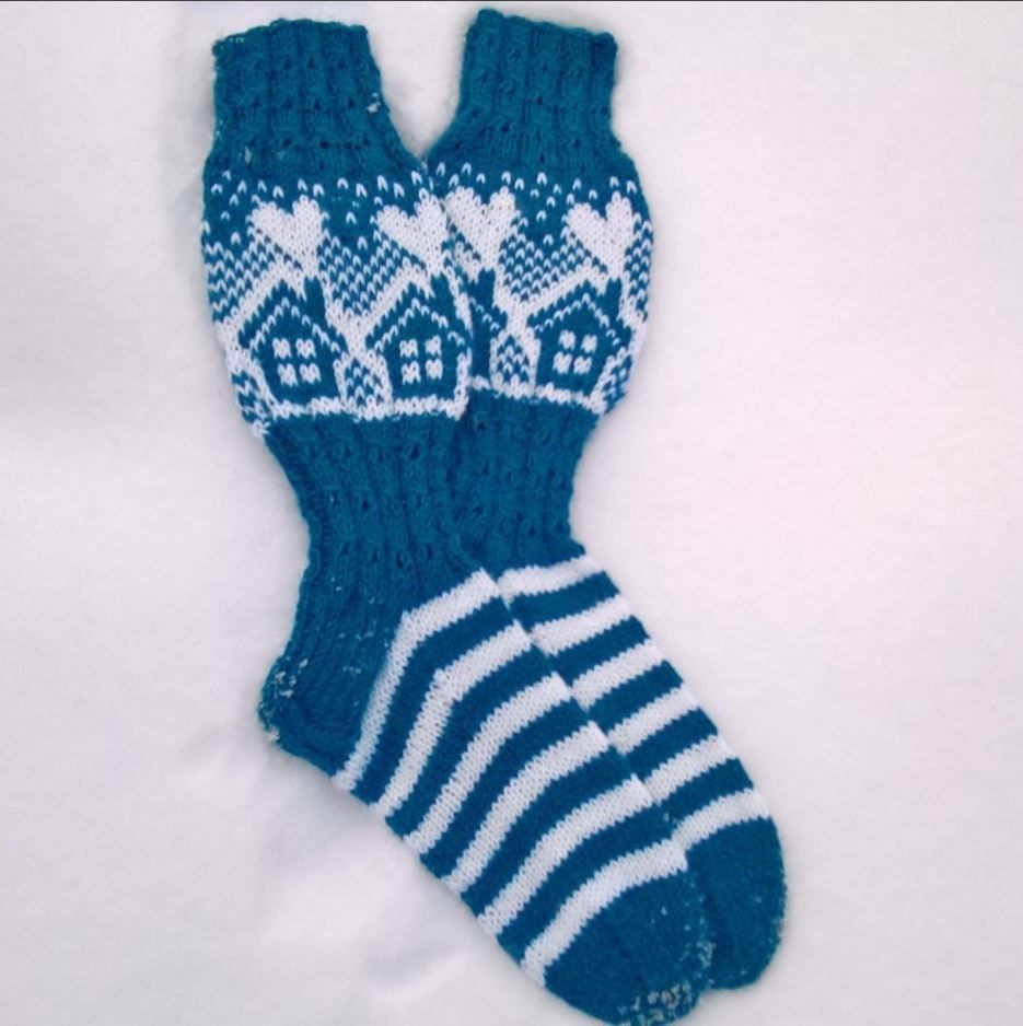 Suuri Käsityö -lehden vanhasta Metsänväki-sukkamallista poimittu yksityiskohta on innostanut käsityönystävät neulomaan somia pikkumökkejä villasukkien varsiin. Katso kuvat erilaisista versioista. Todella taidokasta!
