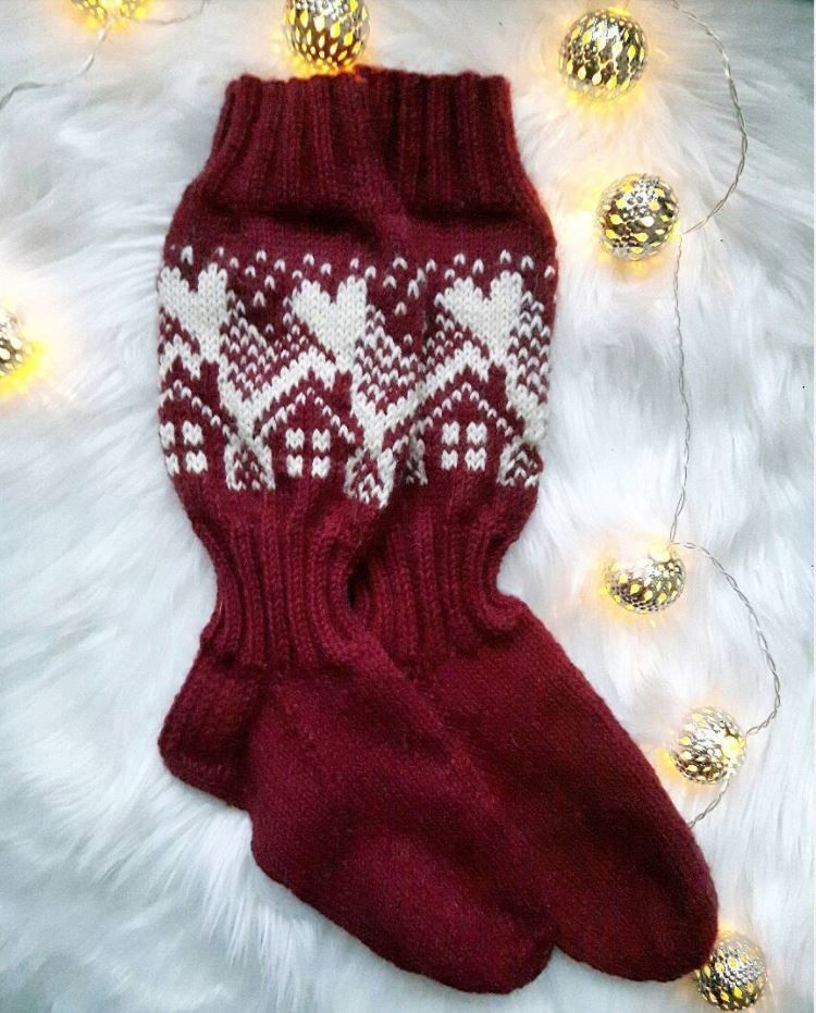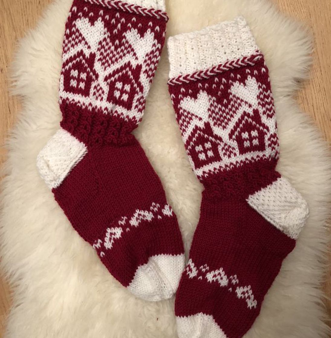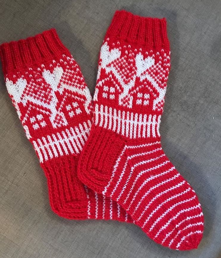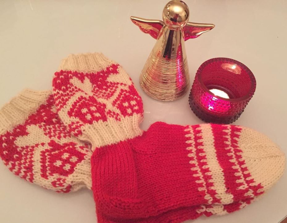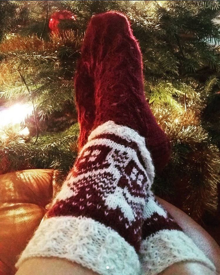 "Nu har jag stickat julsockor åt mig själv också ?. Vi bor i ett rött hus, då måste man ju ha matchande sockor." - @by_ninab