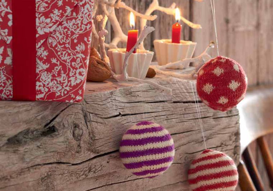 Koristele kuusi lämminhenkisesti itse neulotuilla palloilla.