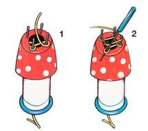 Tarvikkeet: Neulemylly, -nukke tai puinen lankarulla, johon on isketty neljä kannallista naulaa, lyhyt puikko, keskivahvaa villalankaa, erivärisiä huopapaloja, parsinneula, vanua täytteeksi.