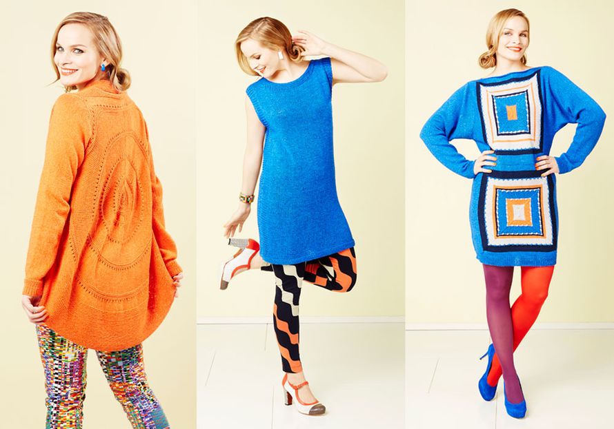 – Yhdistin mallistossani kirkkaita värejä hillittyihin luonnonsävyihin, jotka tekevät kokonaisuudesta hienostuneen. Viskoosin ja puuvillan sekoitelangasta tulee neulottuna kauniisti laskeutuvaa pintaa, joka pehmentää perusmuodot.