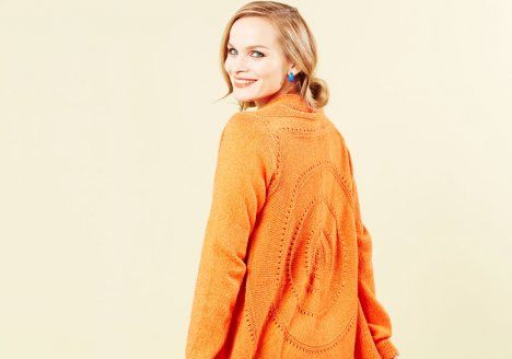 Ibislinnulta värinsä lainanneen, oranssin ympyräjakun Piia Maria pukisi kesämekon kaveriksi kaupungille tai toimistoon ilopilleriksi.