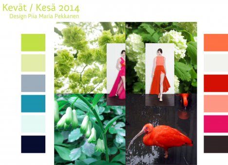 – Olin tehnyt inspiraatiokollaasia kevään ja kesän 2014 trendeistä juuri, ennen kuin lähdin perheeni kanssa eläintarhaan. Purskahdin siellä nauruun, kun näin punaoranssina hehkuvan ibislinnun. Muotitietoisen linnun väritys on kuin suoraan catwalkilta. Väri ei kainostele, vaan tulee rohkeasti esiin.