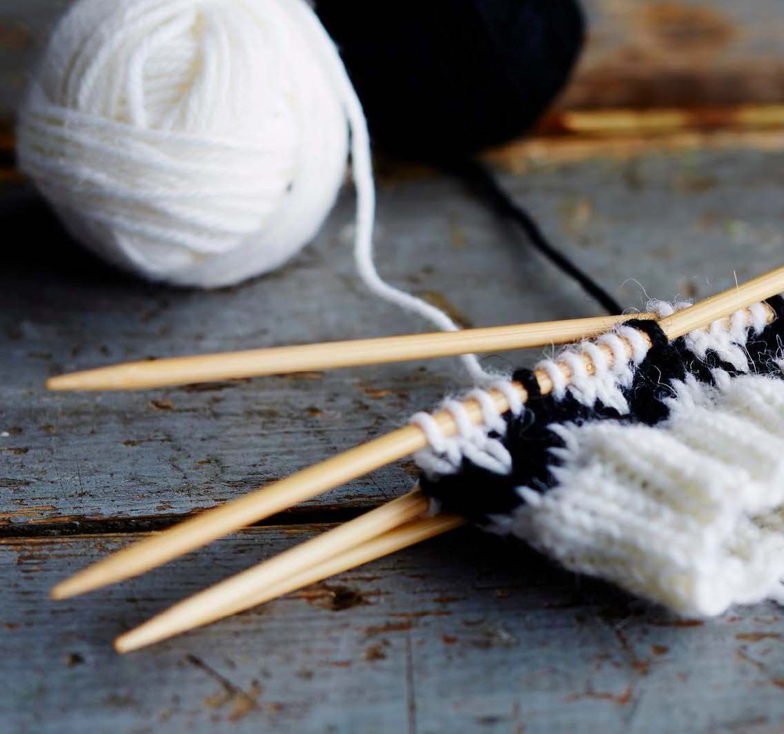 Tarvikkeet: Kahta väriä Novita 7 Veljestä -lankaa, esimerkiksi 50 g valkoista ja 50 g vaaleanpunaista. Sukkapuikot 3 mm ja 3,5 mm.