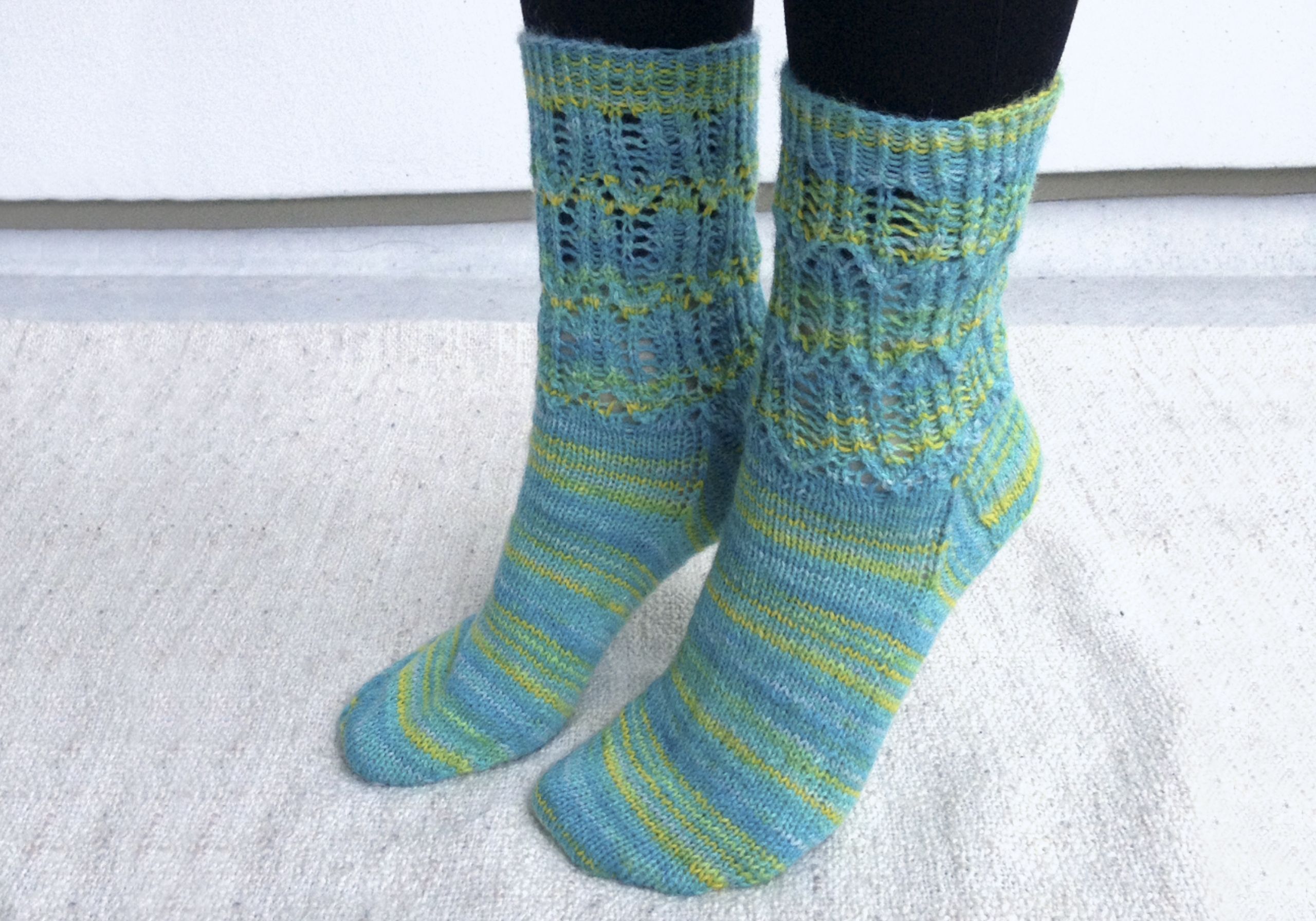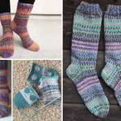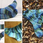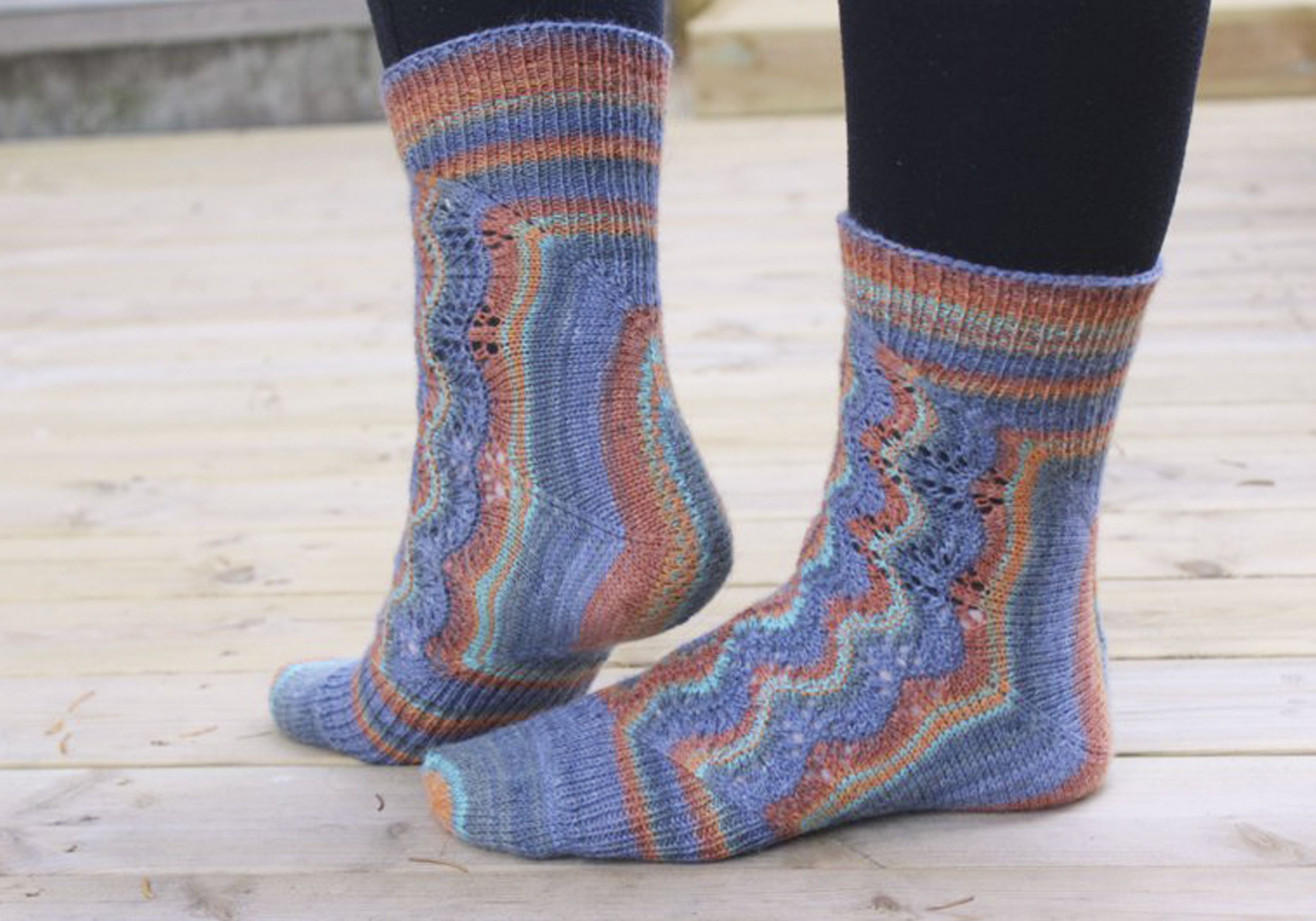 "Lanka sopii perussukkien lisäksi sukkiin, joissa on jotain yksinkertaista pintaneuletta tai kirjoneulesukkiin yksivärisen langan kanssa."
