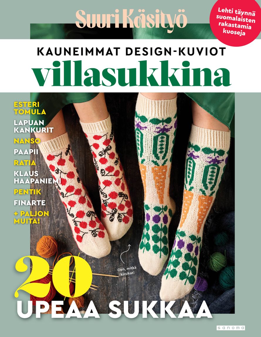 Suuren Käsityön tuottama Kauneimmat design-kuviot villasukkina -lehti yhdistää kaksi rakasta: kotimaisen muotoilun ja villasukat.