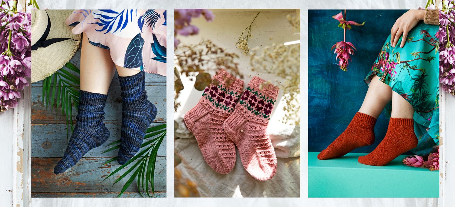 Sukkia, sukkia, sukkia! Niitä me neulojat teemme, oli talvi tai kesä. Rakastamme koukeroisia kirjoneuleita, nopeita ja helppoja varpaanlämmittimiä, ohuista langoista neulottuja kesäsukkia.