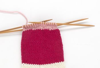 1. Luo silmukat kahdella puikolla tai yhdellä paksummalla puikolla, jotta reunasta tulee tarpeeksi joustava.