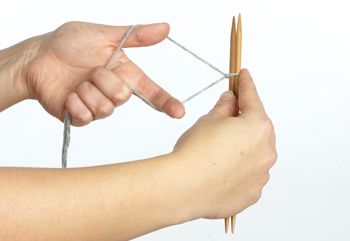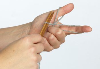 12. Koukkaa lanka etusormelta oikealle puikolle.