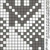 18. Neulo yhtä monta kerrosta kuin kantalapussa on silmukoita. Kantalapun reunaan muodostuu silmukkaketju. Lappu on valmis, kun ketjussa on yhtä monta silmukkaa kuin yhdellä puikolla on silmukoita. Neulo viimeiseksi nurja kerros.