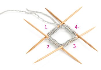 7. Jaa silmukat neljälle puikolle.