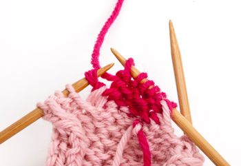 9. Oikea silmukka: Pistä oikea puikko vasemman puikon silmukasta.
