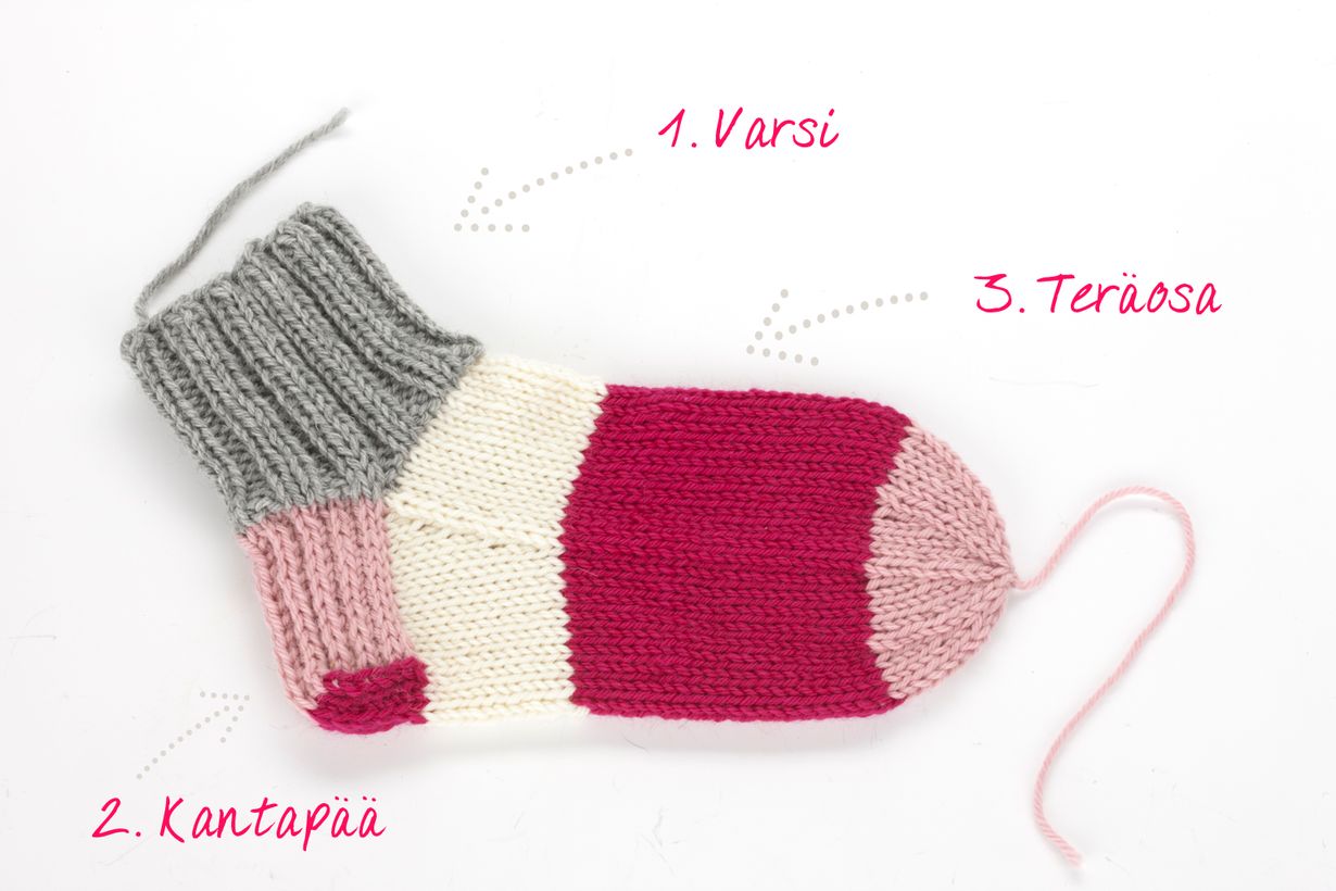 Katso opasvideo tai tulosta kuvitetut villasukan neulomisohjeet! Näillä neuvoilla selviät yli kantapään aina kärkeen saakka.