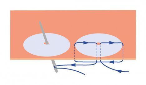 Katso kuvasta, kuinka ompelet yksittäisiä paljetteja.