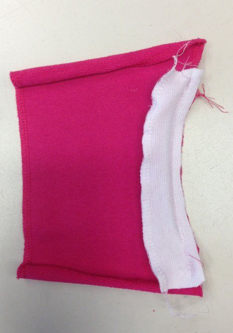 13. Taita resori kaksin kerroin nurjat vastakkain. Ompele resori hihansuuhun resoria venyttäen.