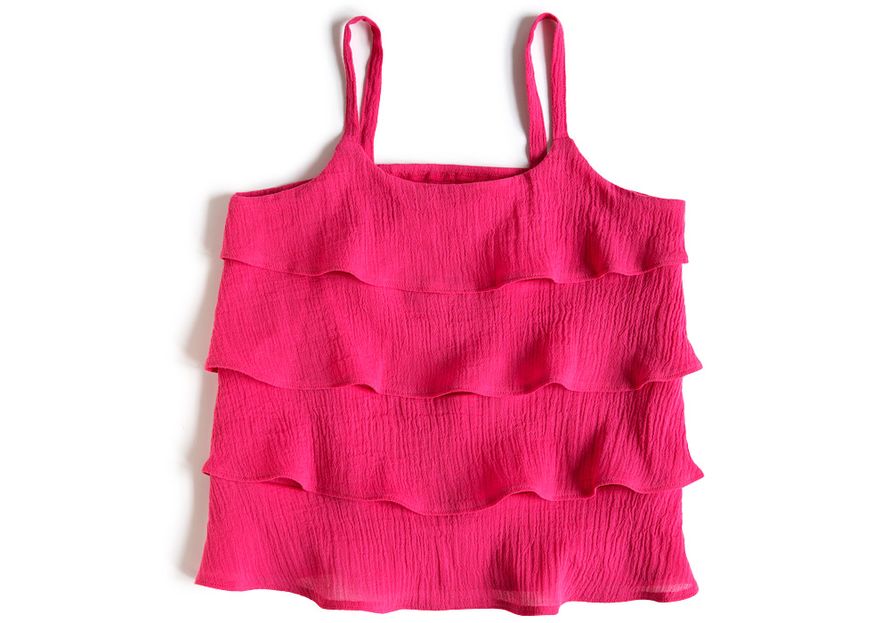 Kevätjuhlien kaunein toppi voi nyt olla omatekemä. Iida suunnitteli sinulle topin, jonka edessä on neljä kerrosta röyhelöitä, mutta takaa se on suora.
