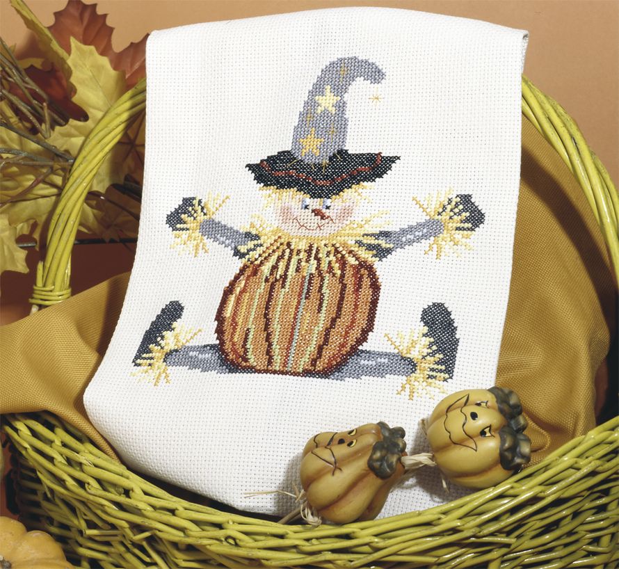 Kirjominen: Kirjo ristipistoin muliinilangan 2 säikeellä ristipistojen alapistot vasemmalta oikealle ja päälipistot oikealta vasemmalle. Kirjo varsipistot yhdellä säikeellä. Aloita kirjominen kurpitsapojan ja kankaan keskeltä ja etene reunoille päin.