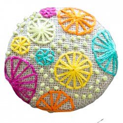 Ompele sitruskuviot etupistoilla ja pilkuta välit solmupistoilla.
