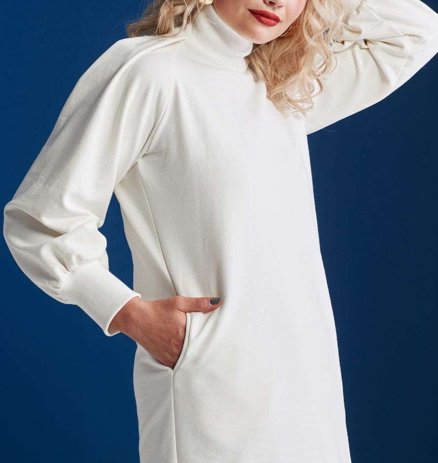 6. Ompele lopuksi sivusauma tavalliseen tapaan etu- ja takakappaleen oikeat puolet vastakkain. Kaarrettu taskunsuu pysyy ommellessa varmasti auki ja sen ylä- ja alakulmista tulee kestävät etenkin, jos vahvistat ne sivusaumaa ommellessasi edestakaisompeleilla.